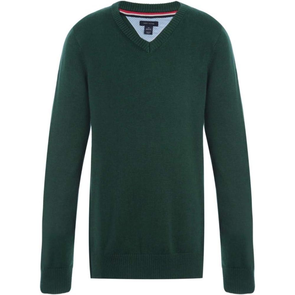 Tommy Hilfiger Boys Long Sleeve Ribbed V-Neck Pullover Sweater, School Uniforms(Hunter)