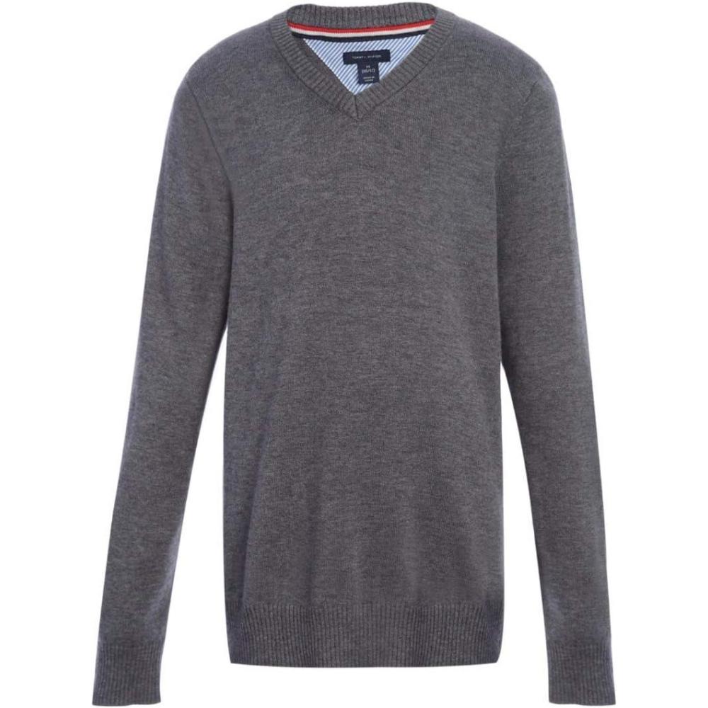 Tommy Hilfiger Boys Long Sleeve Ribbed V-Neck Pullover Sweater, School Uniforms(Medium Grey Heather)