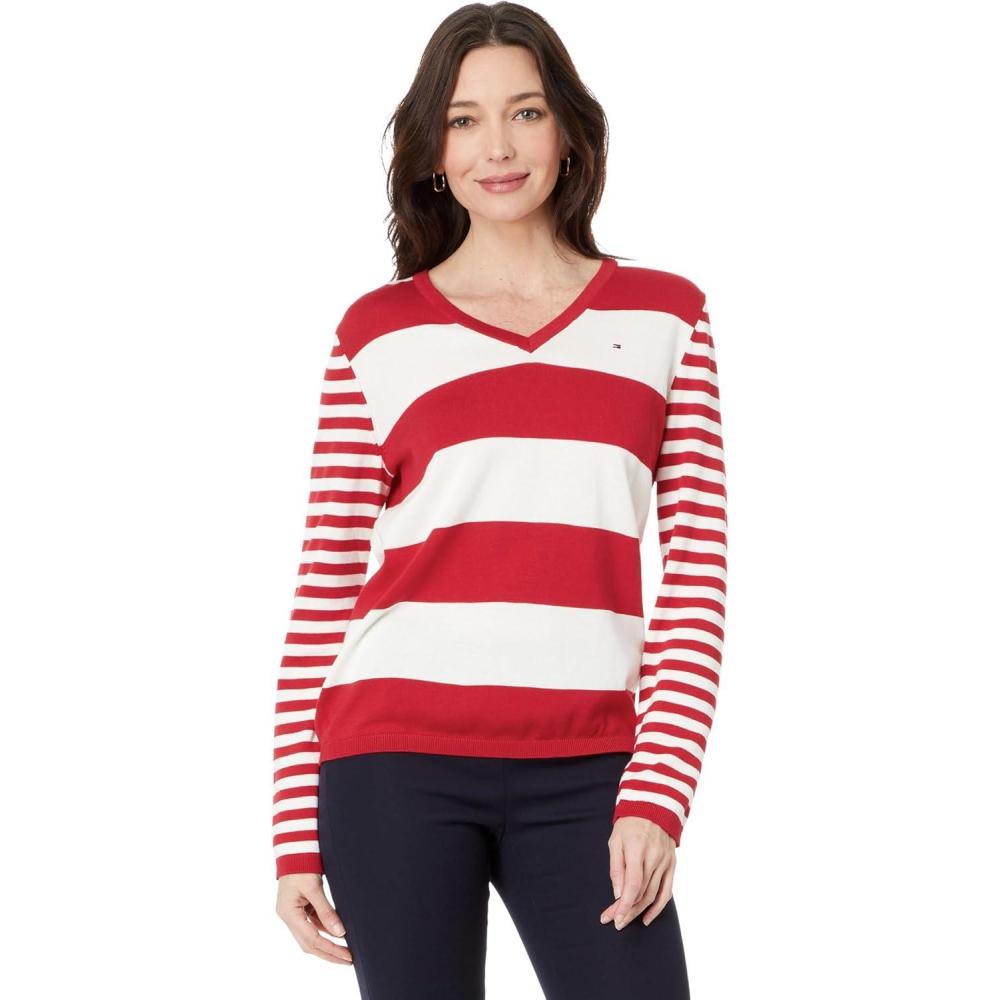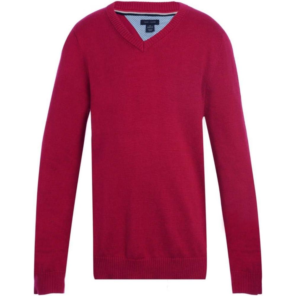 Tommy Hilfiger Boys Long Sleeve Ribbed V-Neck Pullover Sweater, School Uniforms(Red)