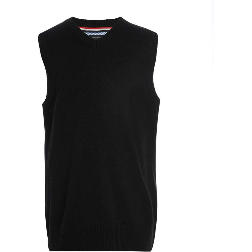 Tommy Hilfiger Boys Sleeveless Ribbed V-Neck Sweater Vest, Kids School Uniform(Black)