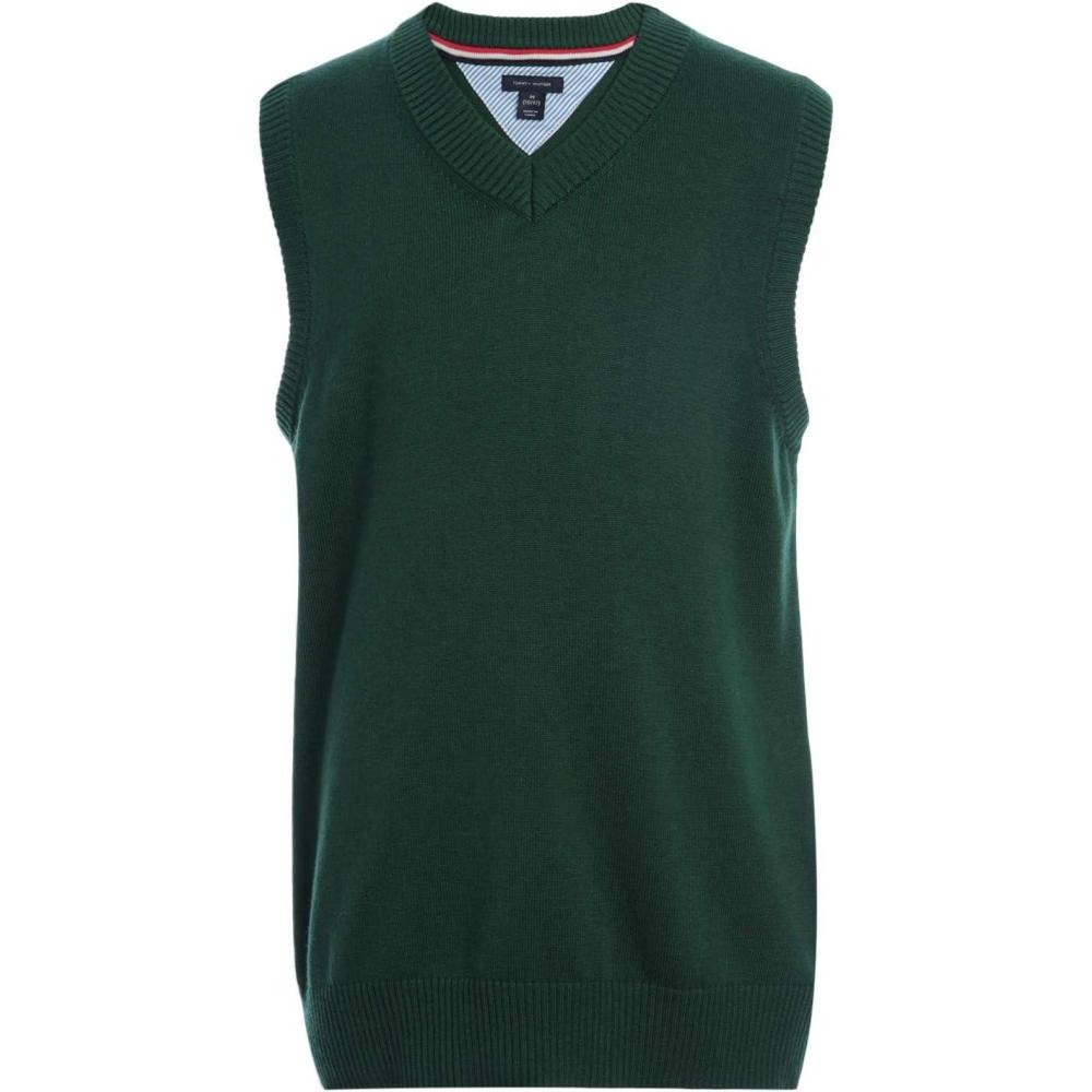 Tommy Hilfiger Boys Sleeveless Ribbed V-Neck Sweater Vest, Kids School Uniform(Hunter)