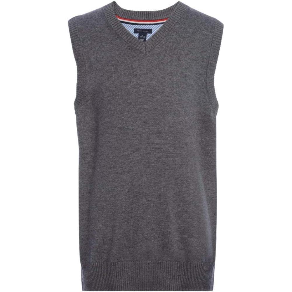 Tommy Hilfiger Boys Sleeveless Ribbed V-Neck Sweater Vest, Kids School Uniform(Medium Grey Heather)