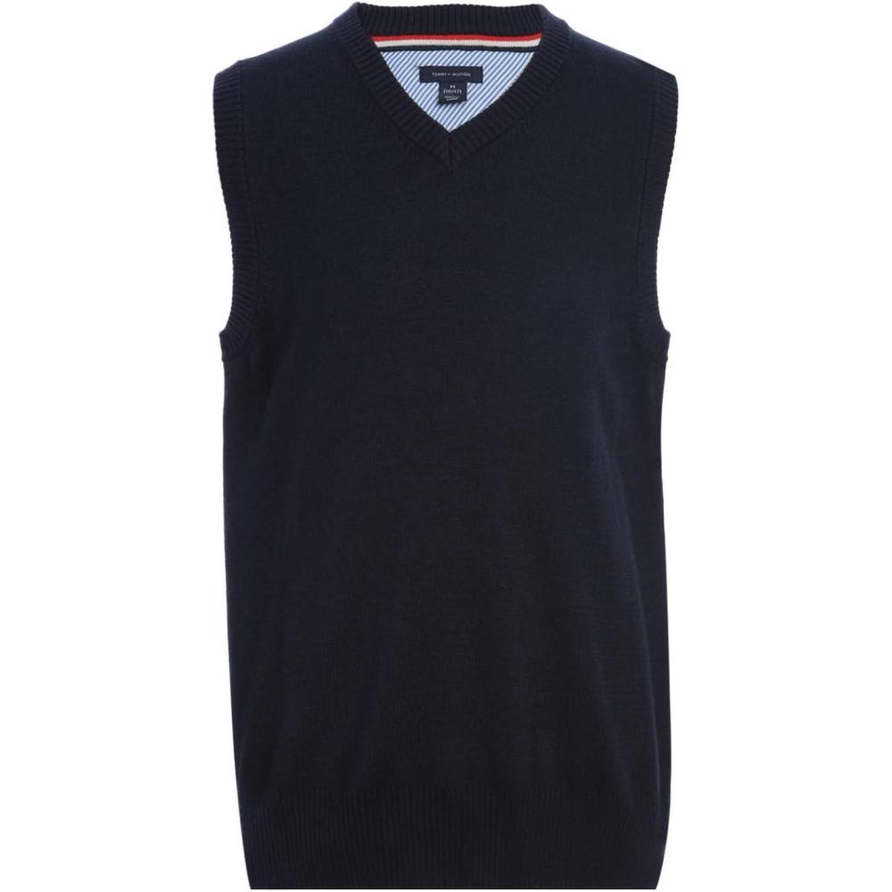 Tommy Hilfiger Boys Sleeveless Ribbed V-Neck Sweater Vest, Kids School Uniform(Navy)