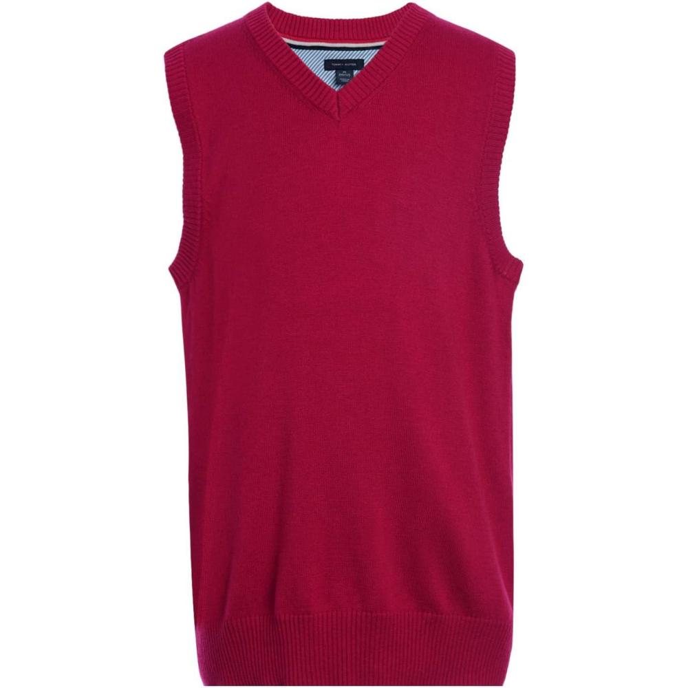 Tommy Hilfiger Boys Sleeveless Ribbed V-Neck Sweater Vest, Kids School Uniform(Red)
