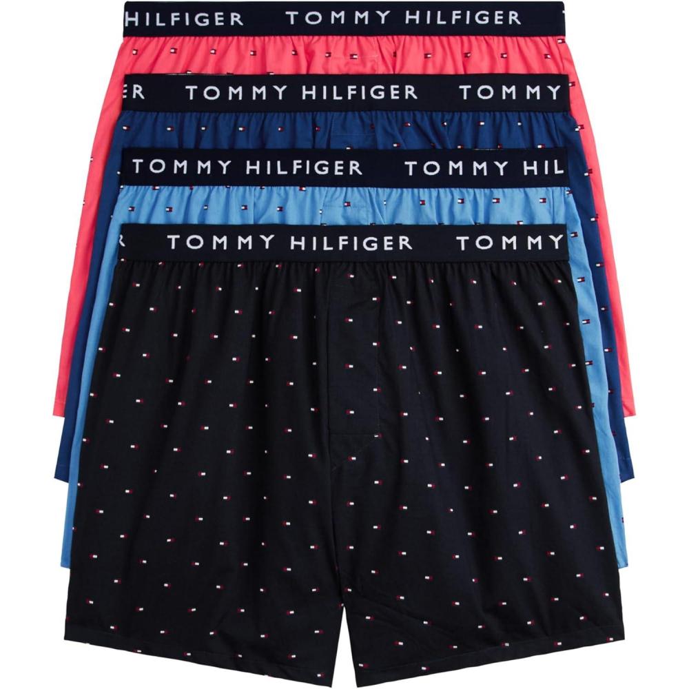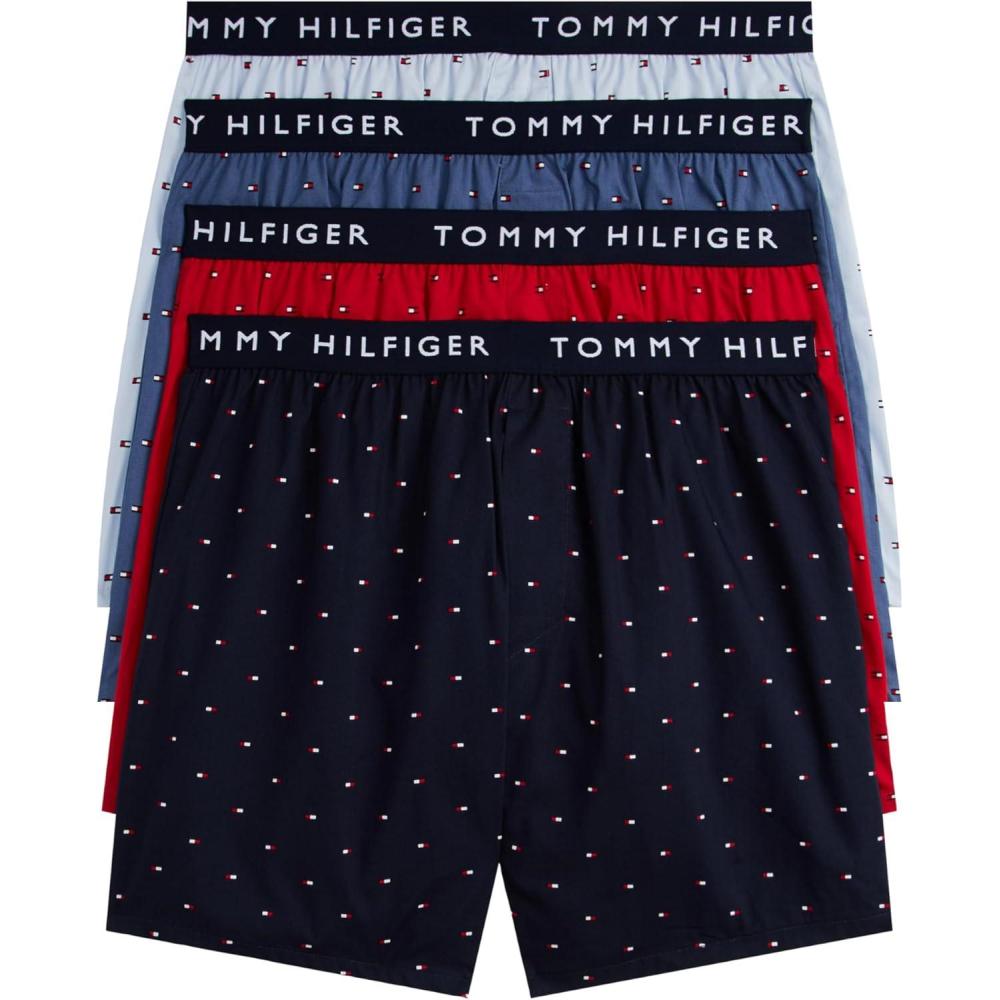 Tommy Hilfiger mens Cotton Classic 4-pack Woven Boxer(Grey Micro Flag Primary Red Micro Flag Pacific Blue Micro Flag Navy Micro Flag)