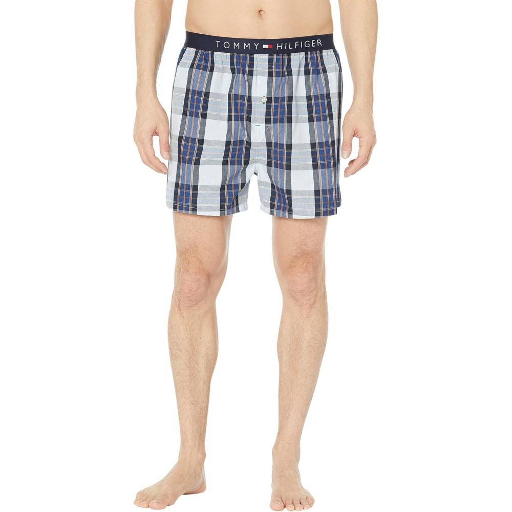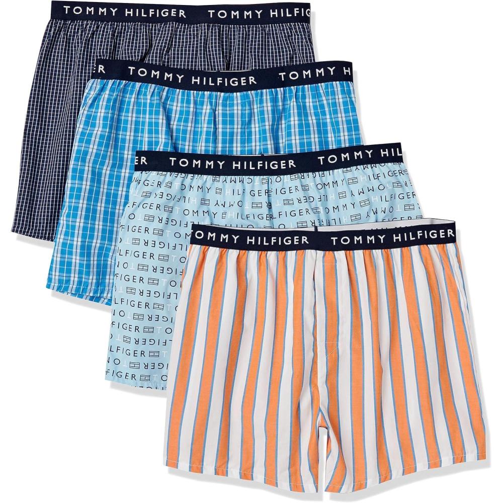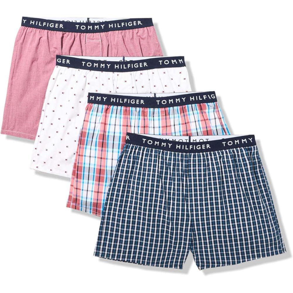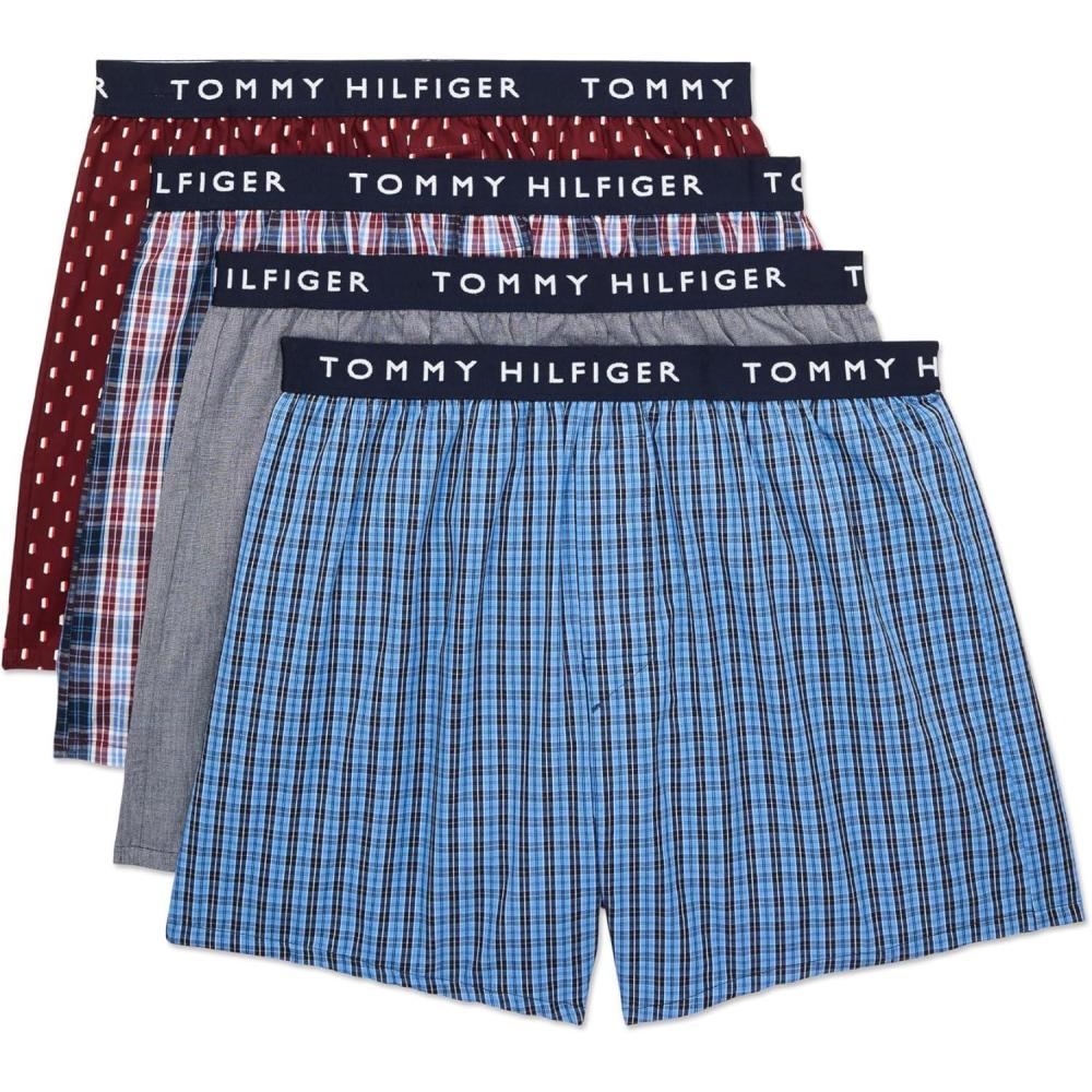 Tommy Hilfiger mens Cotton Classic 4-pack Woven Boxer(Desert Sky Plaid Deep Rouge Print Swedish Sea Plaid Desert Sky)