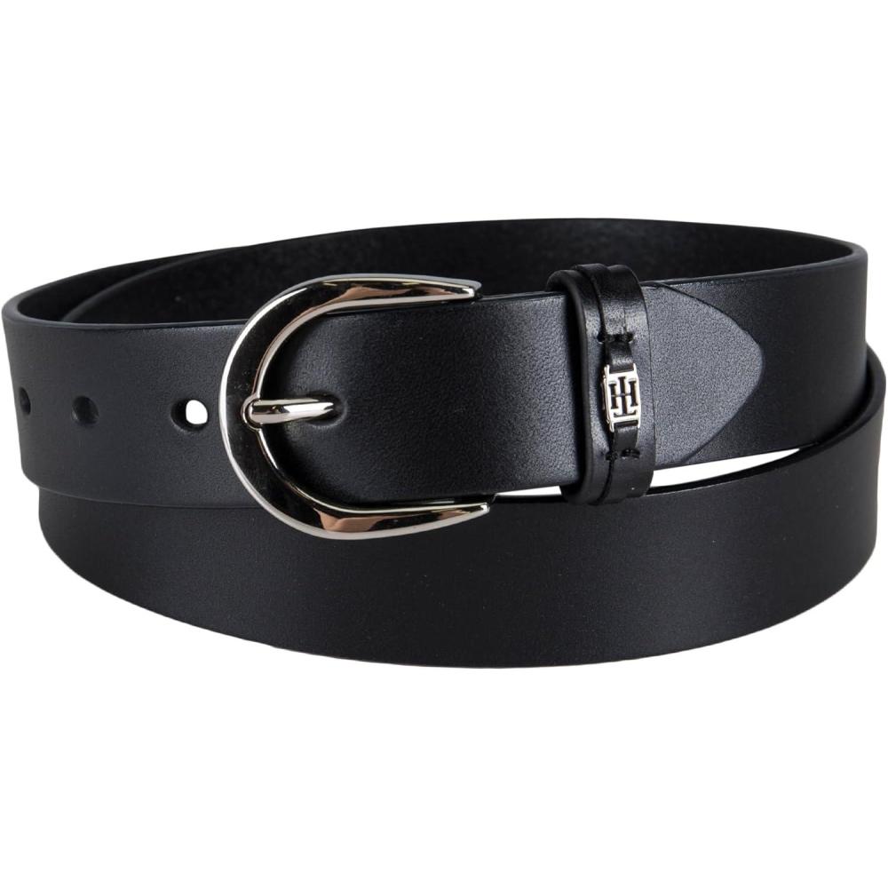 Tommy Hilfiger womens H Plaque Buckle Belt(Black)