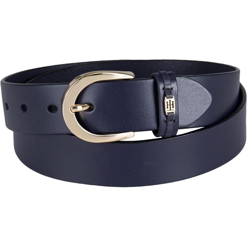 Tommy Hilfiger Women’s TH Ornament Logo Casual Leather Belt for Jeans, Trousers and Dresses(Navy Casual)