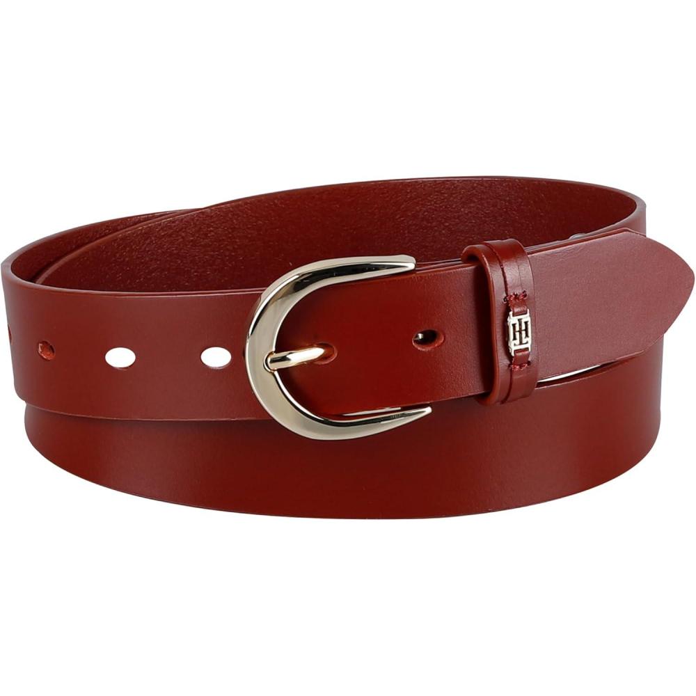 Tommy Hilfiger Women’s TH Ornament Logo Casual Leather Belt for Jeans, Trousers and Dresses(Red)