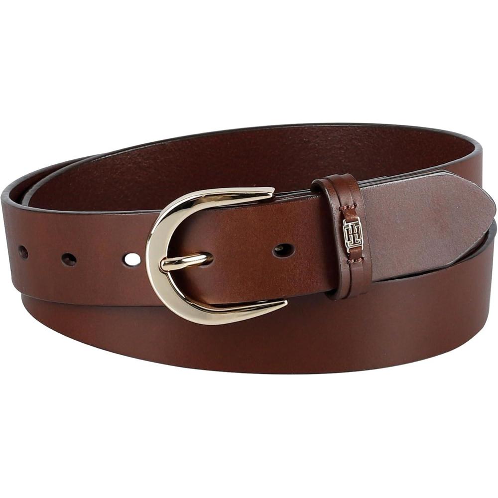 Tommy Hilfiger Women’s TH Ornament Logo Casual Leather Belt for Jeans, Trousers and Dresses(Tan)
