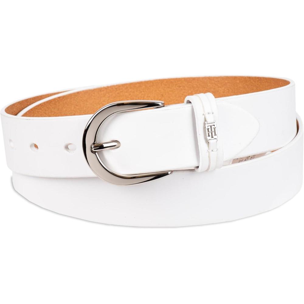 Tommy Hilfiger Women’s TH Ornament Logo Casual Leather Belt for Jeans, Trousers and Dresses(White)