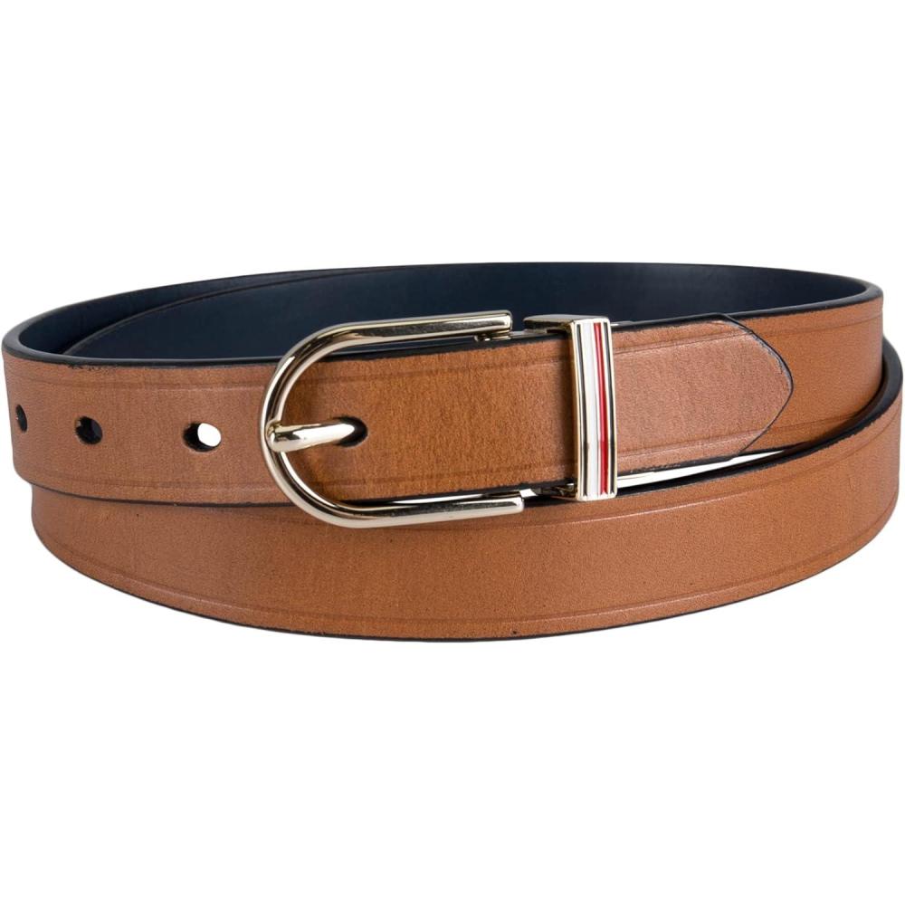 Tommy Hilfiger womens Two-in-one Reversible Slim Width Casual Leather Belt for Jeans, Trousers and Dresses(Tan/Navy)