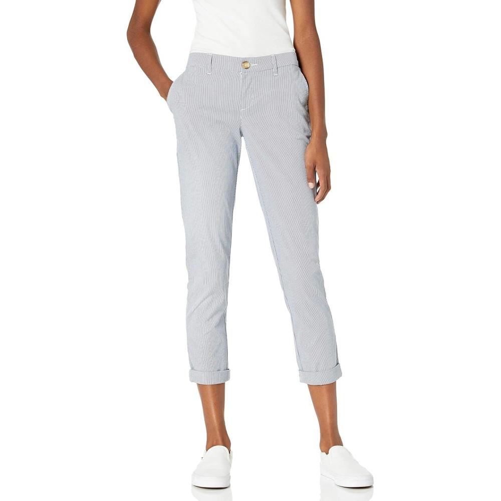 Tommy Hilfiger Womens Hampton High Rise Casual Chino Pants(Blue/White)