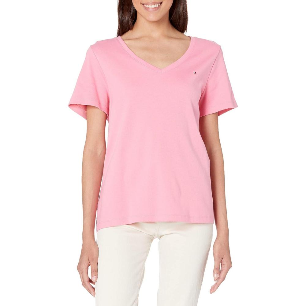Tommy Hilfiger Women’s T-shirts, Plus Size Tops (Standard and Plus Size)(Peony)