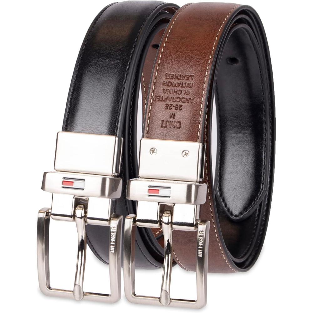 Tommy Hilfiger Big Boys’ Two-in-One Reversible Dress Belt(Black/Brown)