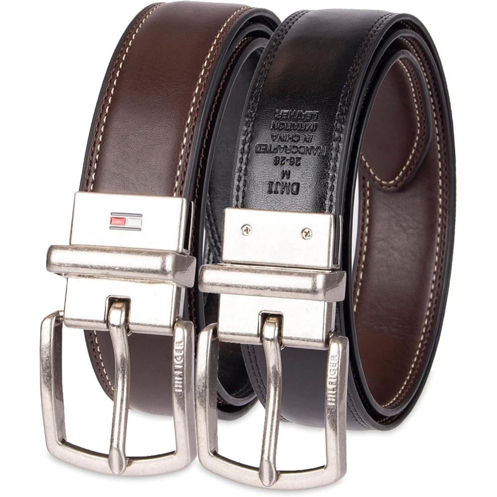 Tommy Hilfiger Big Boys’ Two-in-One Reversible Dress Belt(Dark Brown/Black)