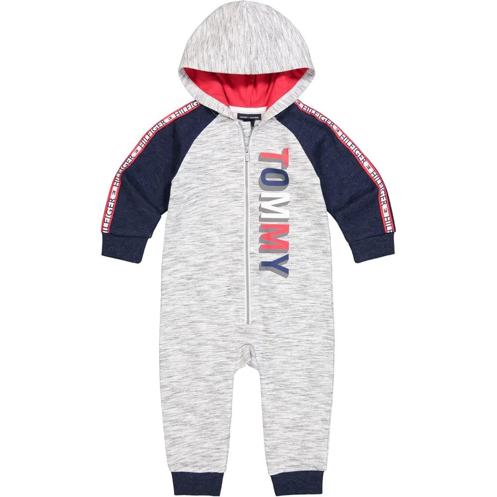 Tommy Hilfiger baby-boys Hooded Coverall(Marled Grey Heather/Medieval Blue/Tango Red)