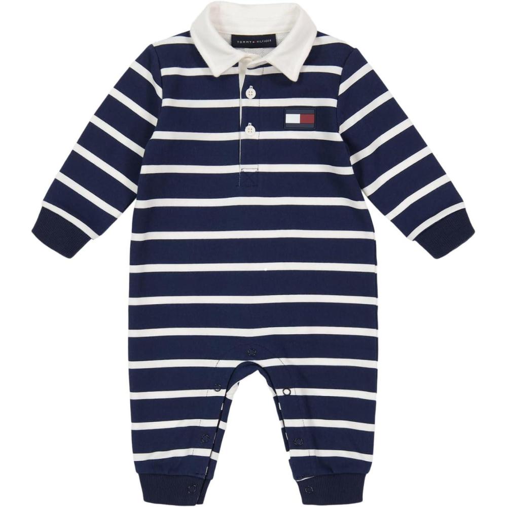 Tommy Hilfiger Baby Boys Coverall with Button Closure, Everyday Casual Wear, Comfortable & Stylish Fit, Navy/White(Navy / White)