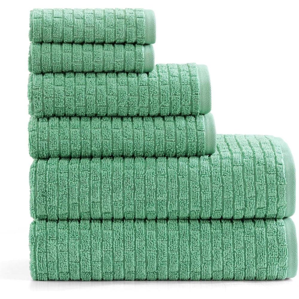 Tommy Hilfiger – Bath Towel Set, Absorbent Cotton with Zero Twist Construction, Medium Weight, Dorm Essentials, Oeko-Tex Certified (Brick Texture White, 6 Pack)(Brick Texture Medium Green)