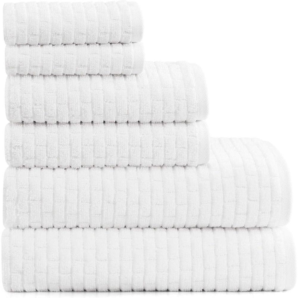 Tommy Hilfiger – Bath Towel Set, Absorbent Cotton with Zero Twist Construction, Medium Weight, Dorm Essentials, Oeko-Tex Certified (Brick Texture White, 6 Pack)(Brick Texture White)