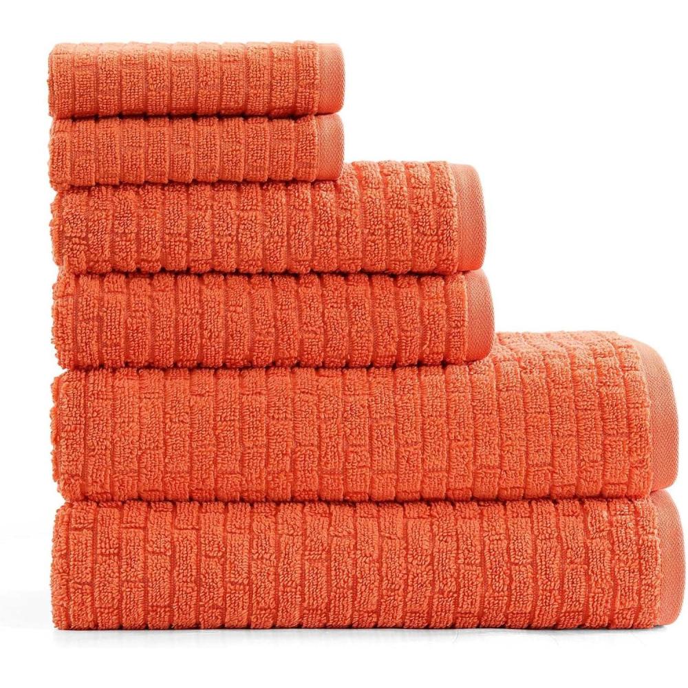 Tommy Hilfiger – Bath Towel Set, Absorbent Cotton with Zero Twist Construction, Medium Weight, Dorm Essentials, Oeko-Tex Certified (Brick Texture White, 6 Pack)(Brick Texture Orange)