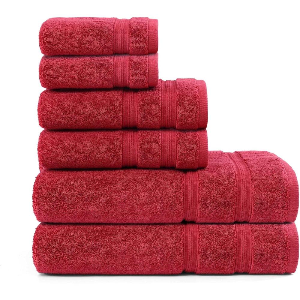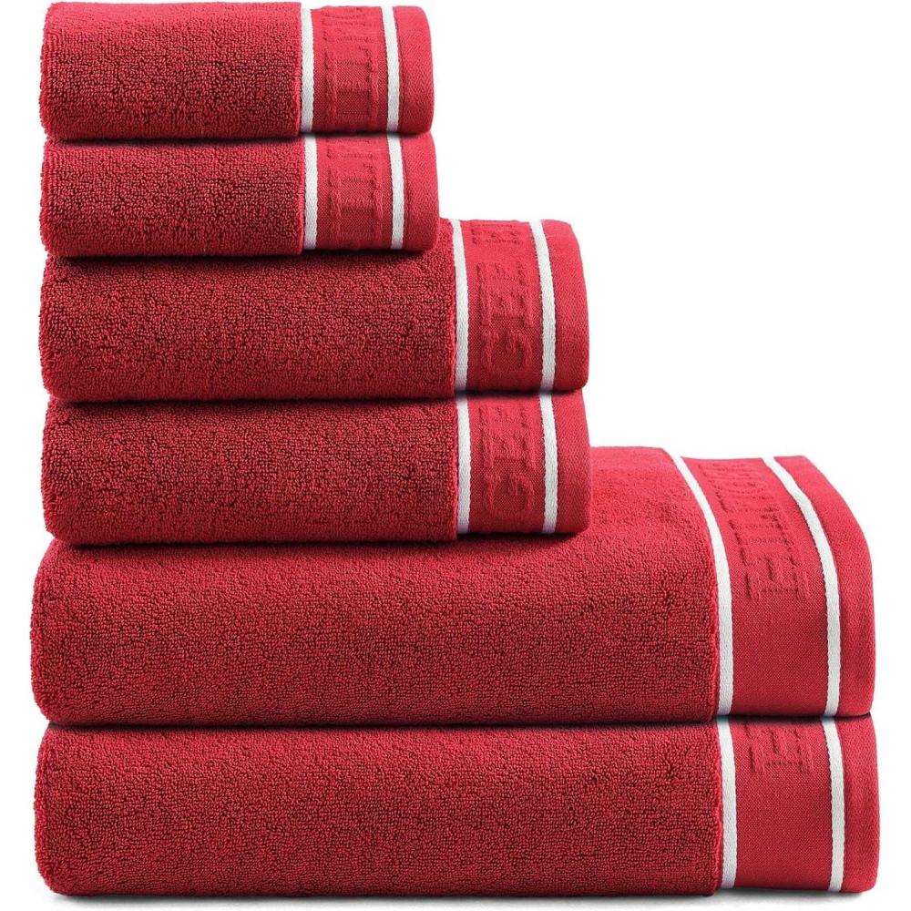 Tommy Hilfiger – Bath Towel Set, Absorbent Cotton Terry with Zero Twist, Medium Weight, Oeko-Tex Certified (Modern American White, 6 Piece)(Red)