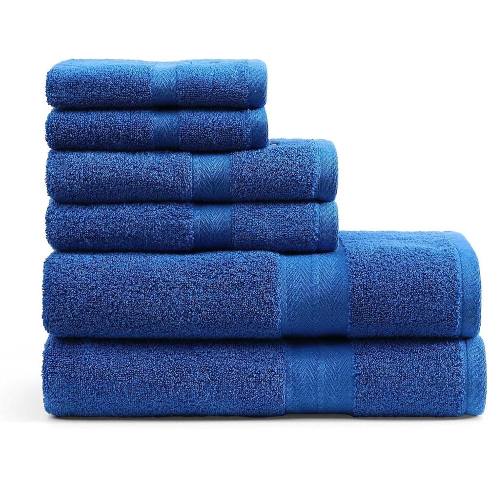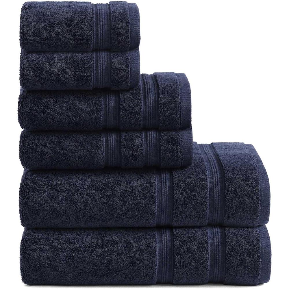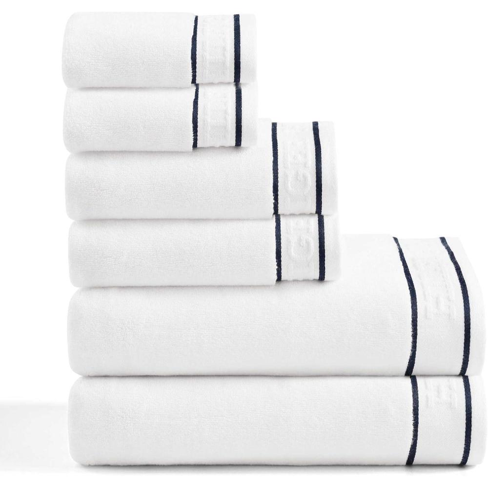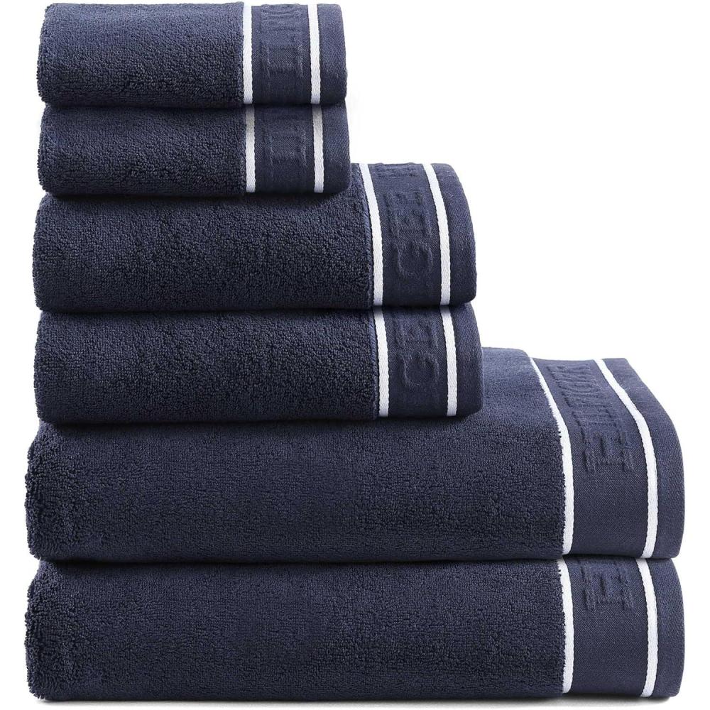Tommy Hilfiger – Bath Towel Set, Absorbent Cotton Terry with Zero Twist, Medium Weight, Oeko-Tex Certified (Modern American White, 6 Piece)(Dark Blue)