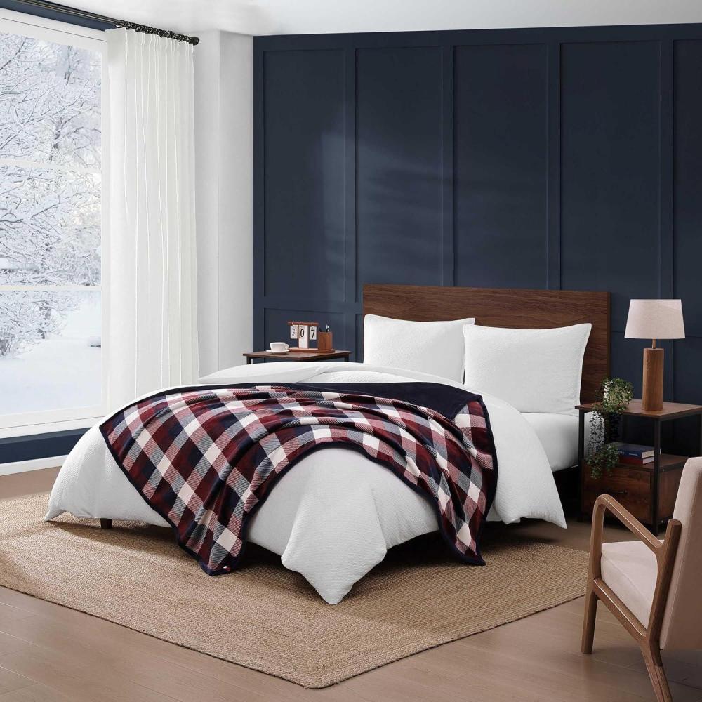 Tommy Hilfiger – Blanket, Ultra-Soft Plush Throw Blanket for Bed or Couch, Cozy Bedding with Solid Reverse & Tailored Hem, Medium Weight for Year Round Comfort (Dumbo Windowpane Grey, 50″ x 70″)(Derby Plaid Red)