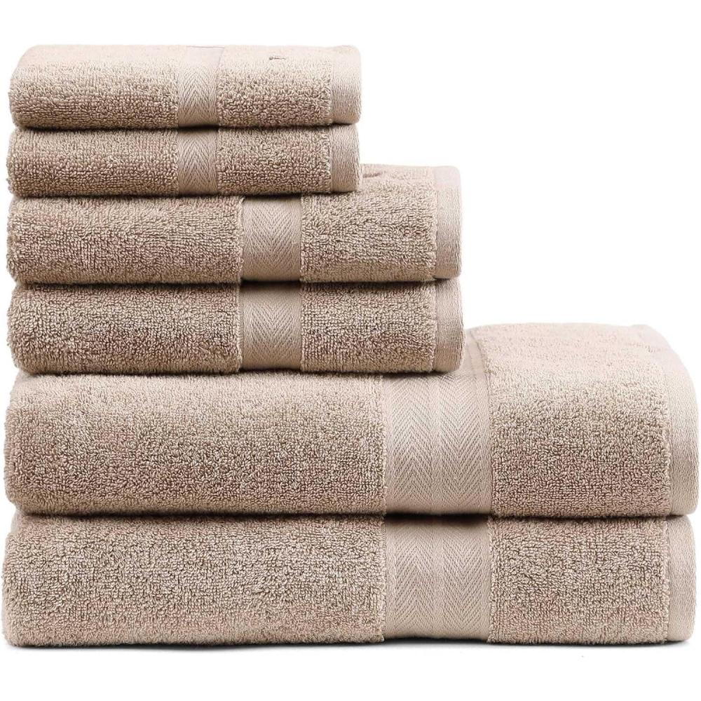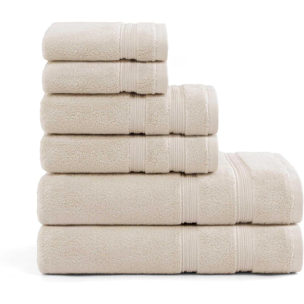 Tommy Hilfiger – Bath Towel Set, Absorbent Cotton Terry with Zero Twist, Medium Weight, Oeko-Tex Certified (Modern American White, 6 Piece)(Beige)
