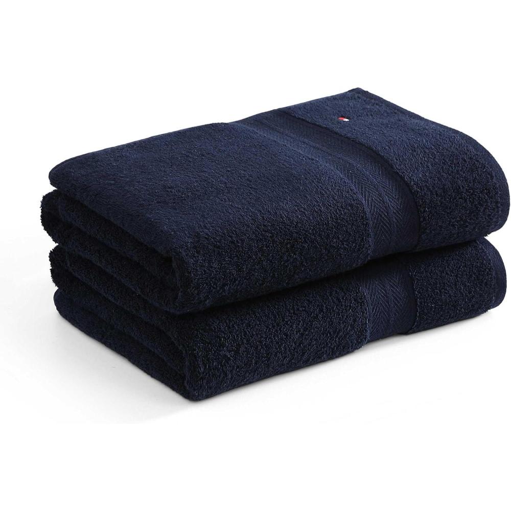 Tommy Hilfiger – Bath Towels, Ultra-Soft & Quick Drying with Zero Twist, 600 GSM Bathroom Towels with Iconic Flag Accent (Legacy Navy Blue, 6 Piece)(Legacy Navy Blue)