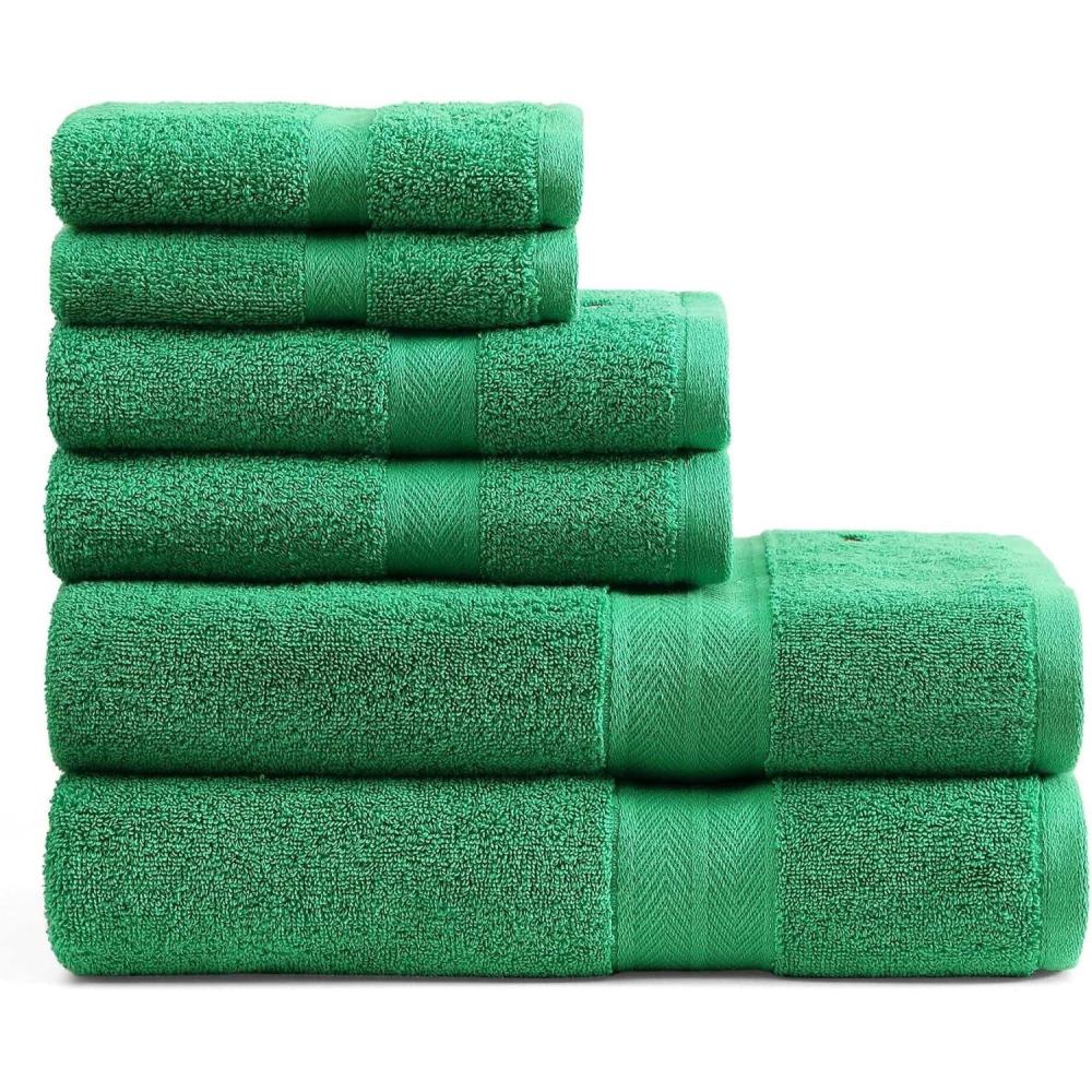Tommy Hilfiger – Bath Towel Set, Absorbent Cotton Terry with Zero Twist, Medium Weight, Oeko-Tex Certified (Modern American White, 6 Piece)(Green)