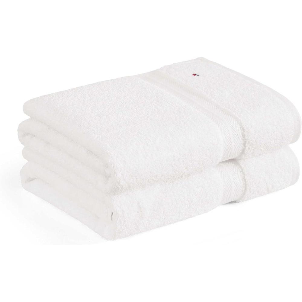 Tommy Hilfiger – Bath Towels, Ultra-Soft & Quick Drying with Zero Twist, 600 GSM Bathroom Towels with Iconic Flag Accent (Harborside Solid White, 6 Piece)(Harborside Solid White)