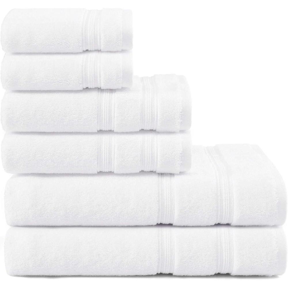 Tommy Hilfiger – Bath Towel Set, Absorbent Cotton Terry with Zero Twist, Medium Weight, Oeko-Tex Certified (Modern American White, 6 Piece)(White)