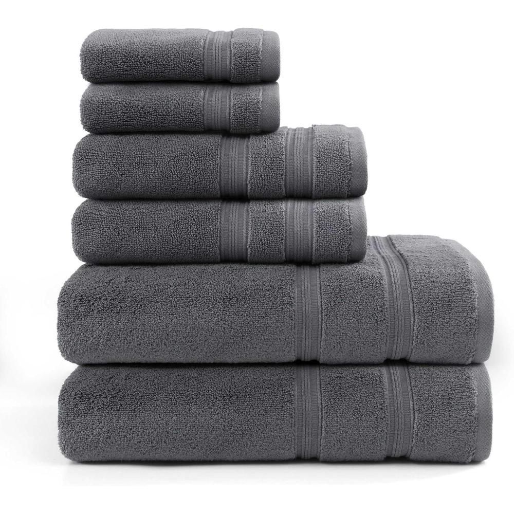 Tommy Hilfiger – Bath Towels, Ultra-Soft & Quick Drying with Zero Twist, 600 GSM Bathroom Towels with Iconic Flag Accent (Harborside Solid White, 6 Piece)(Harborside Solid Charcoal Grey)