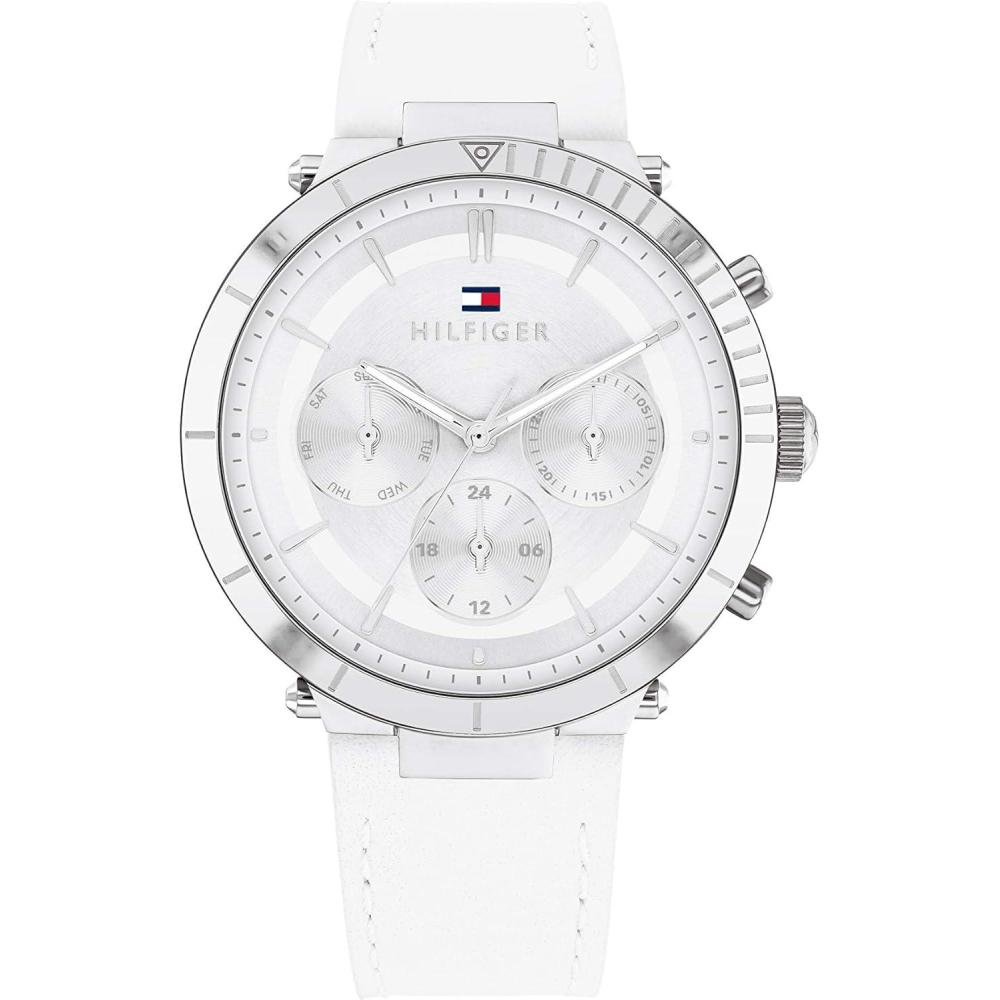 Tommy Hilfiger Women’s Qtz Multifunction Stainless Steel and Leather Strap Casual Watch, Color: White (Model: 1782352)(White)