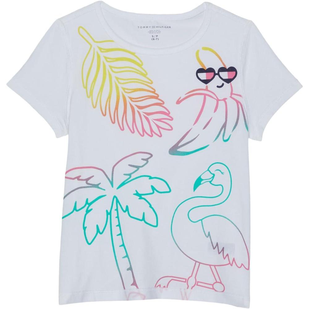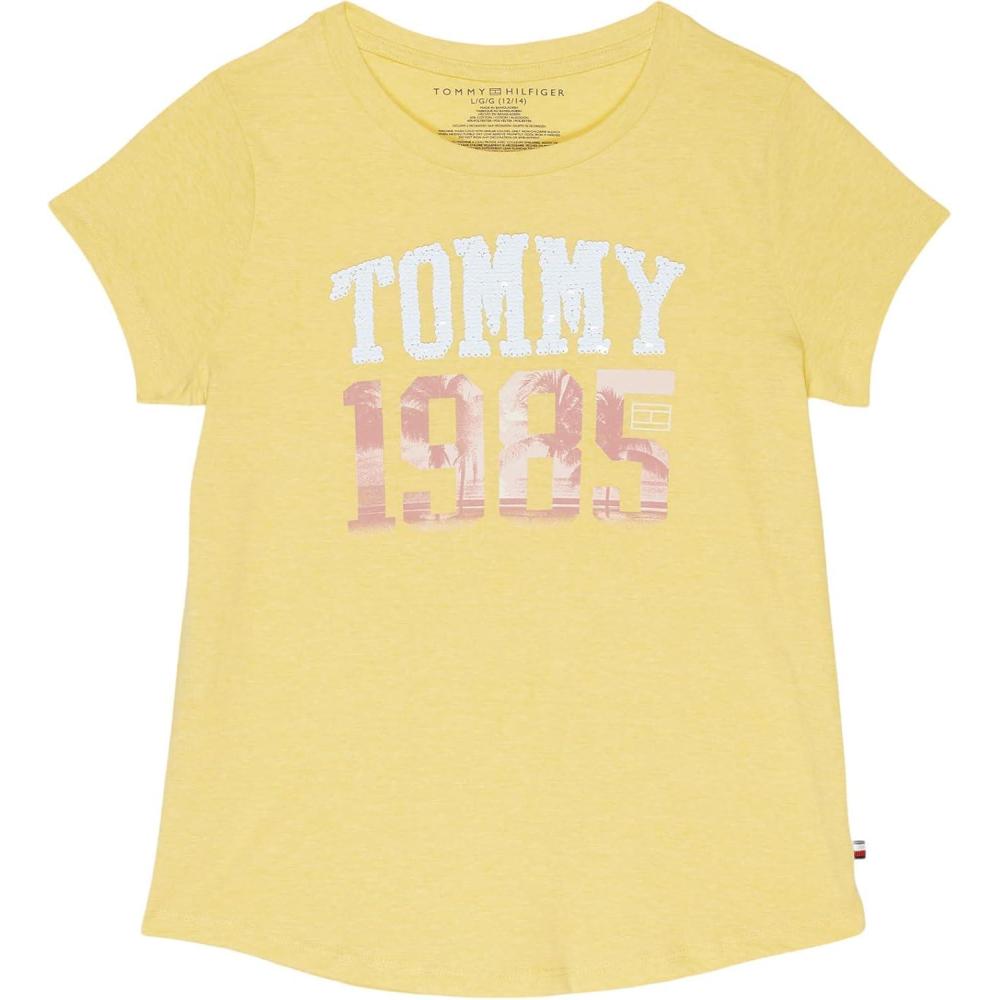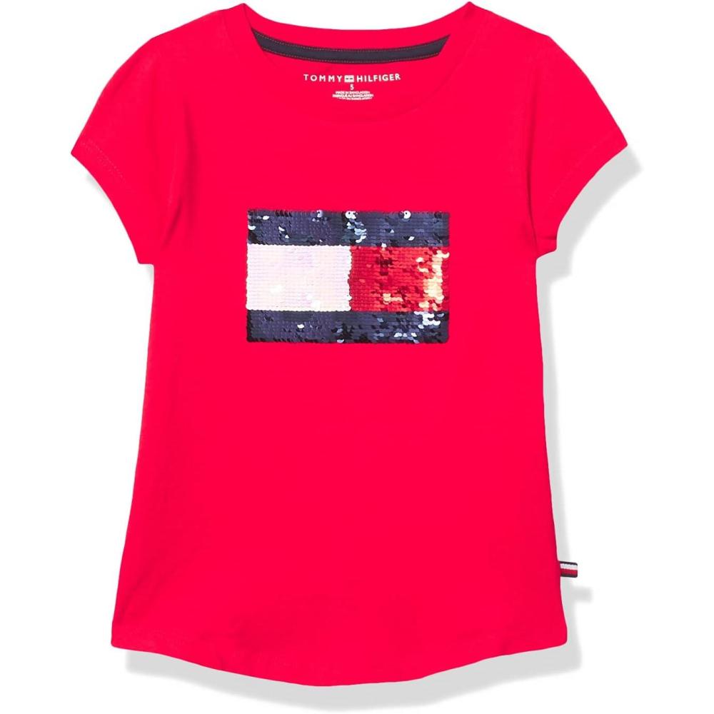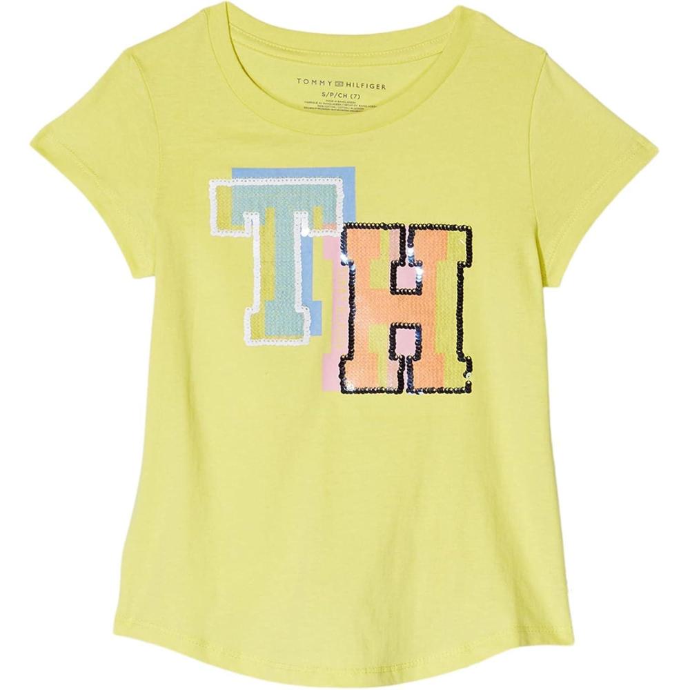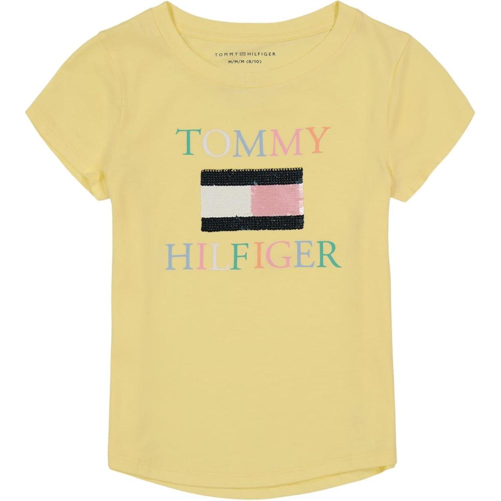 Tommy Hilfiger Girls Fem Fit Short Sleeve Everyday Kids School Uniform Tee(Lemonade Flag)