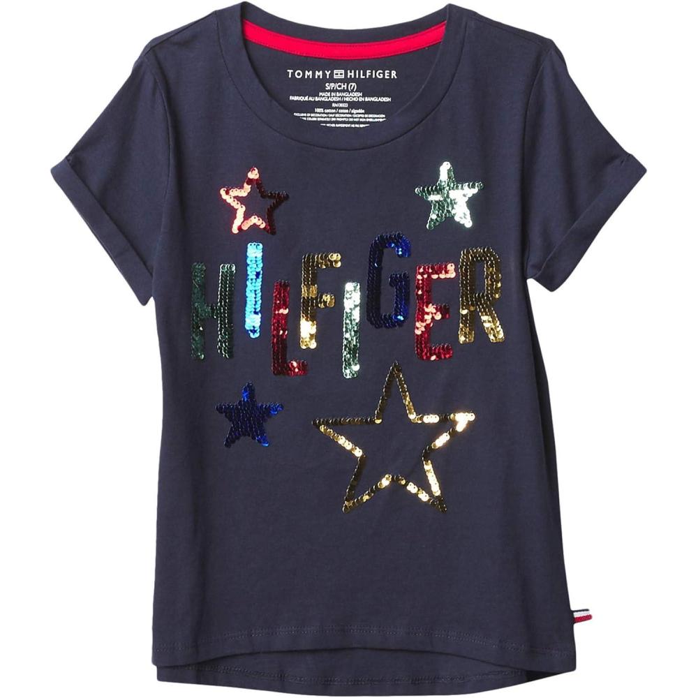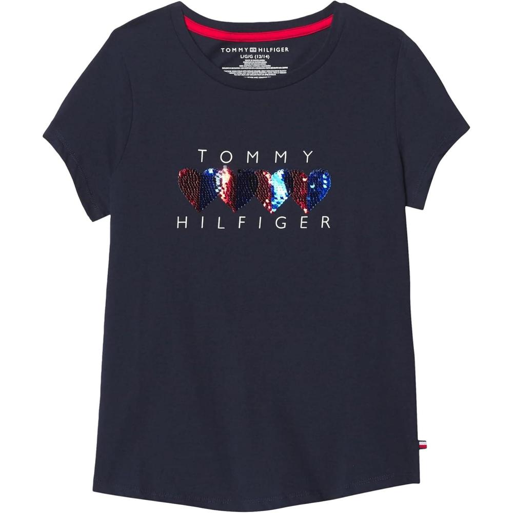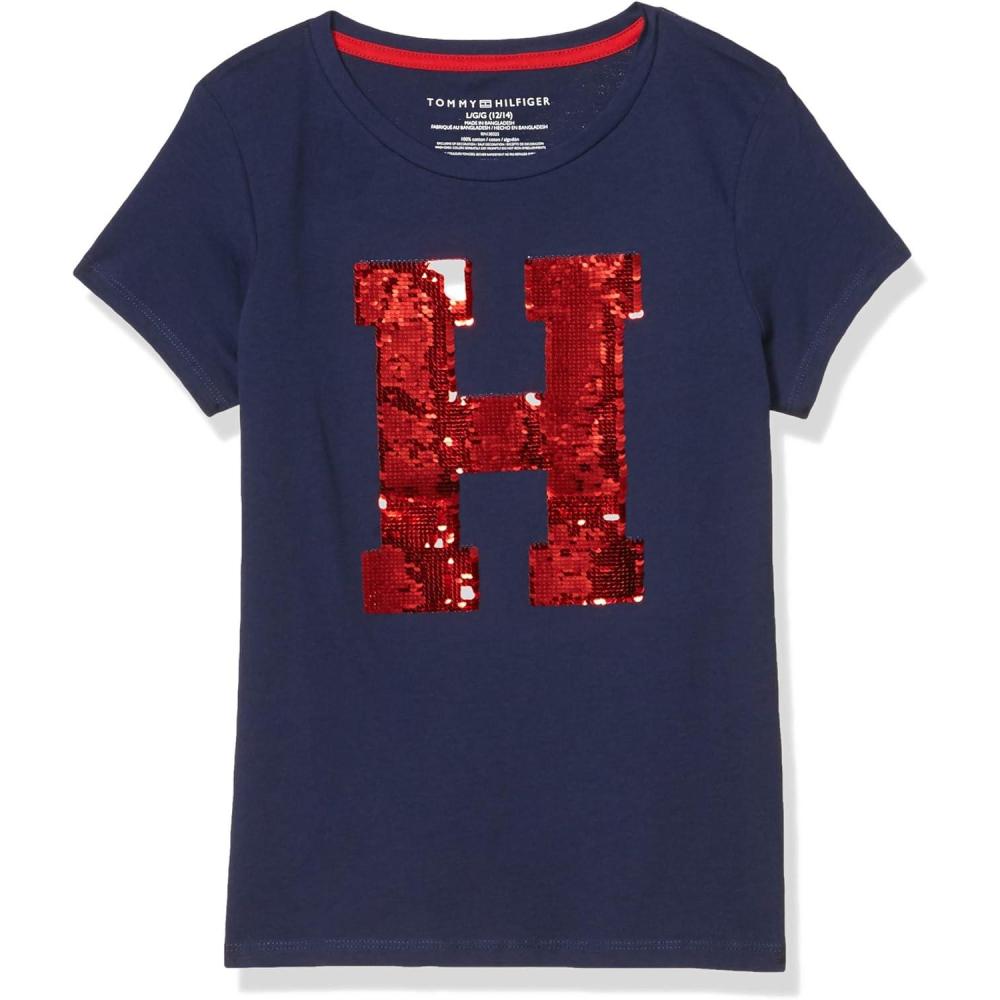 Tommy Hilfiger Girls Fem Fit Short Sleeve Everyday Kids School Uniform Tee(Navy Blazer 33g)
