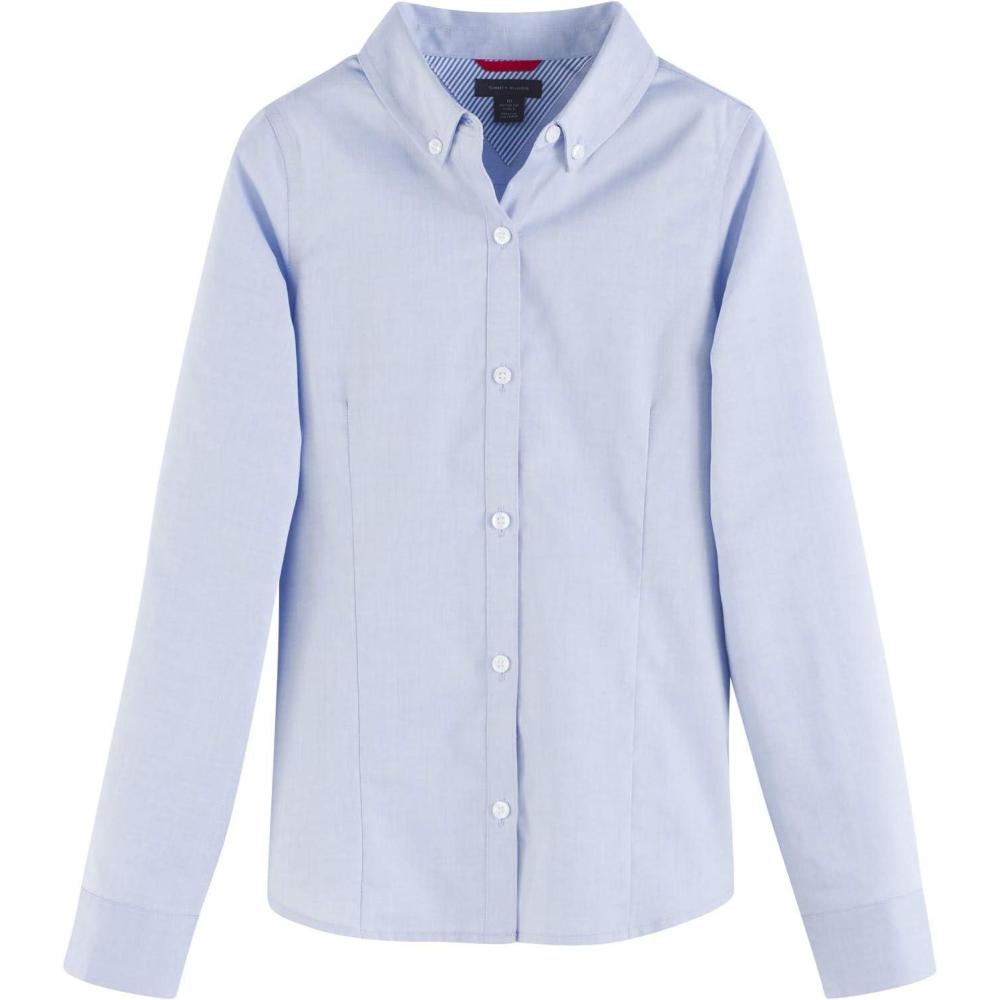 Tommy Hilfiger Girl’s Long Sleeve Oxford Girls Buttondown Collar Blouse(Blue)