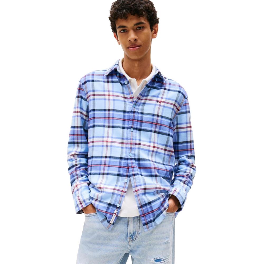 Tommy Jeans Men’s Lightweight Cotton Flannel Check Shirt(Light Powdery Blue / Big Check)