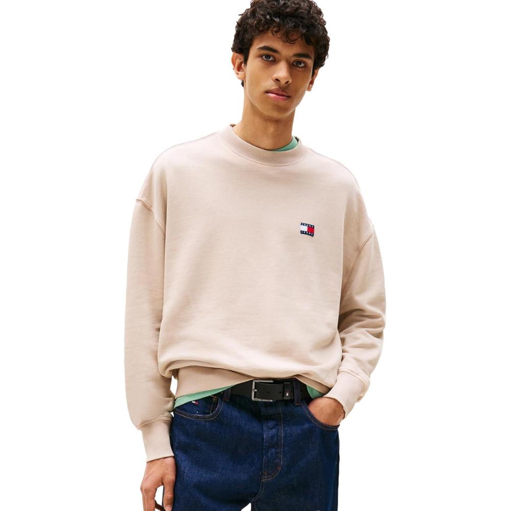 Tommy Jeans Men’s Medium Weight Crewneck Sweatshirt with Embroidered Logo(Coastal Taupe)