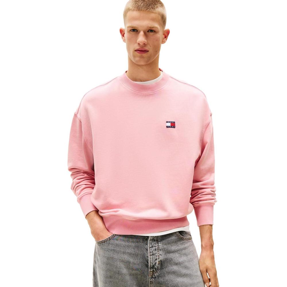 Tommy Jeans Men’s Medium Weight Crewneck Sweatshirt with Embroidered Logo(Mystic Pink)