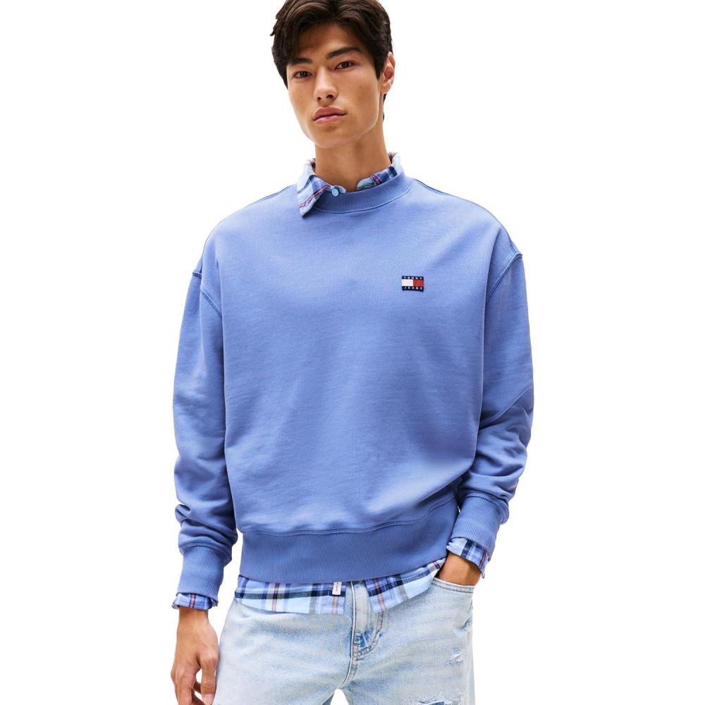 Tommy Jeans Men’s Medium Weight Crewneck Sweatshirt with Embroidered Logo(Soft Sapphire)