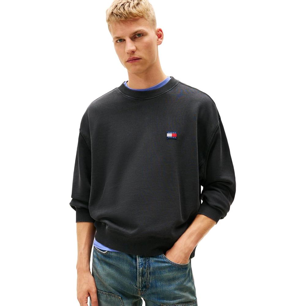 Tommy Jeans Men’s Medium Weight Crewneck Sweatshirt with Embroidered Logo(Washed Black)