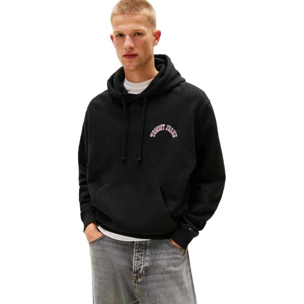 Tommy Jeans Men’s Medium Weight Hoodie Sweatshirt with Printed Back Graphic(Black)