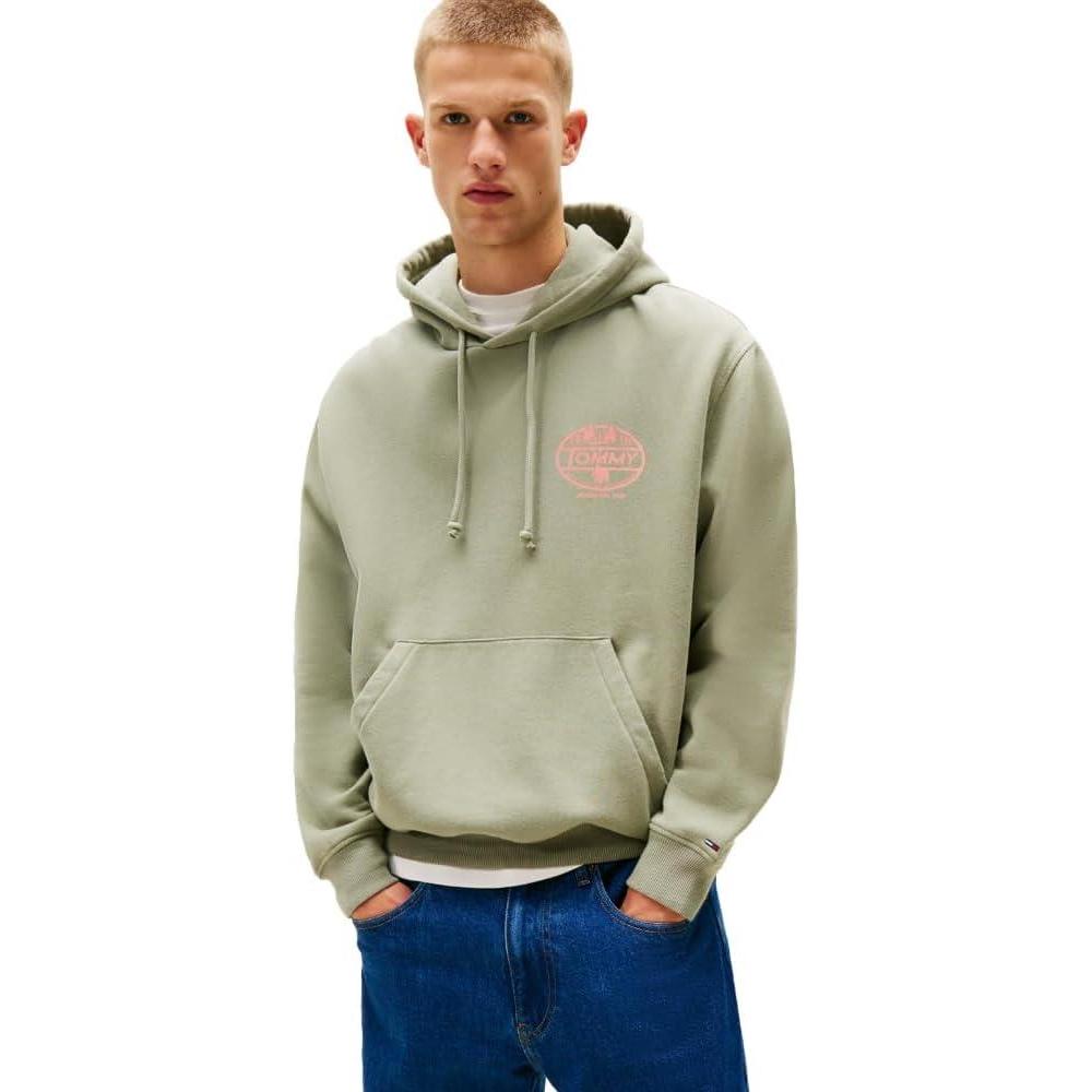 Tommy Jeans Men’s Medium Weight Hoodie Sweatshirt with Printed Back Graphic(Utility Sage)