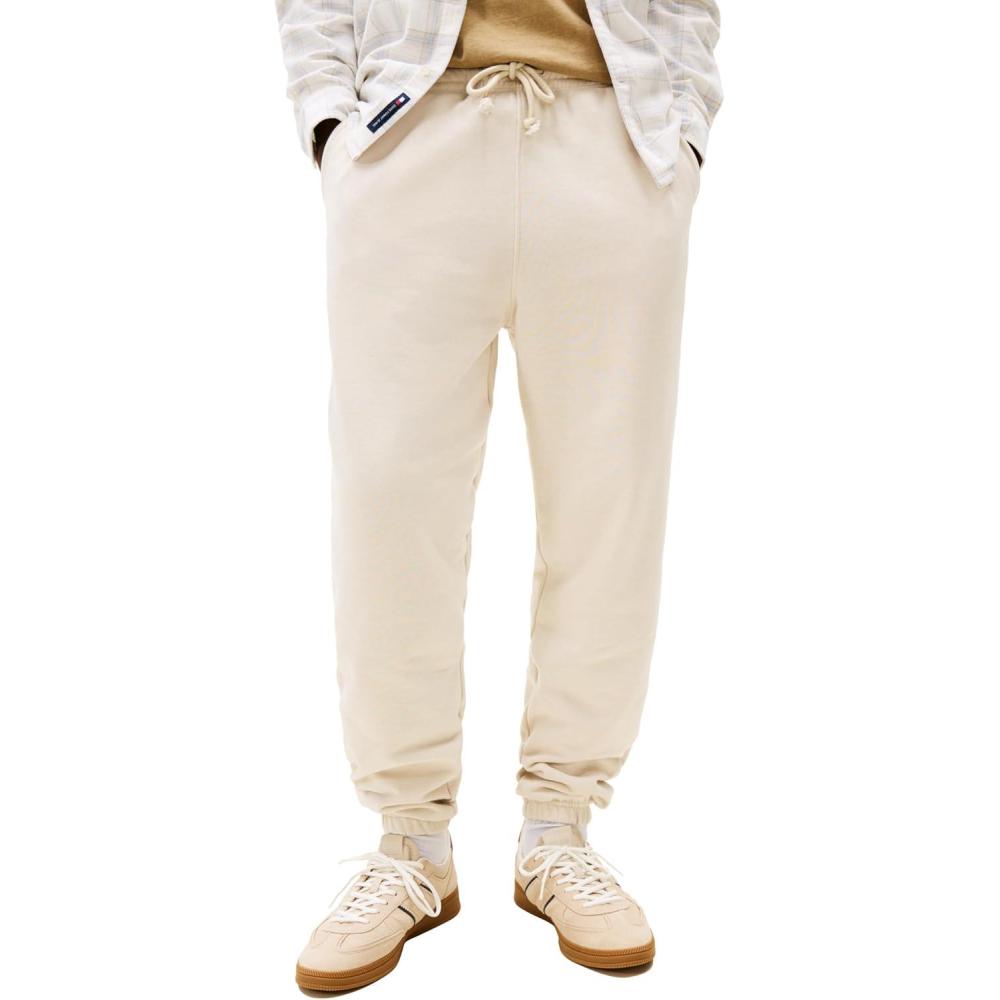 Tommy Jeans Men’s Casual Jogger Sweatpants with Embroidered Flag Logo(Ancient White Heather)