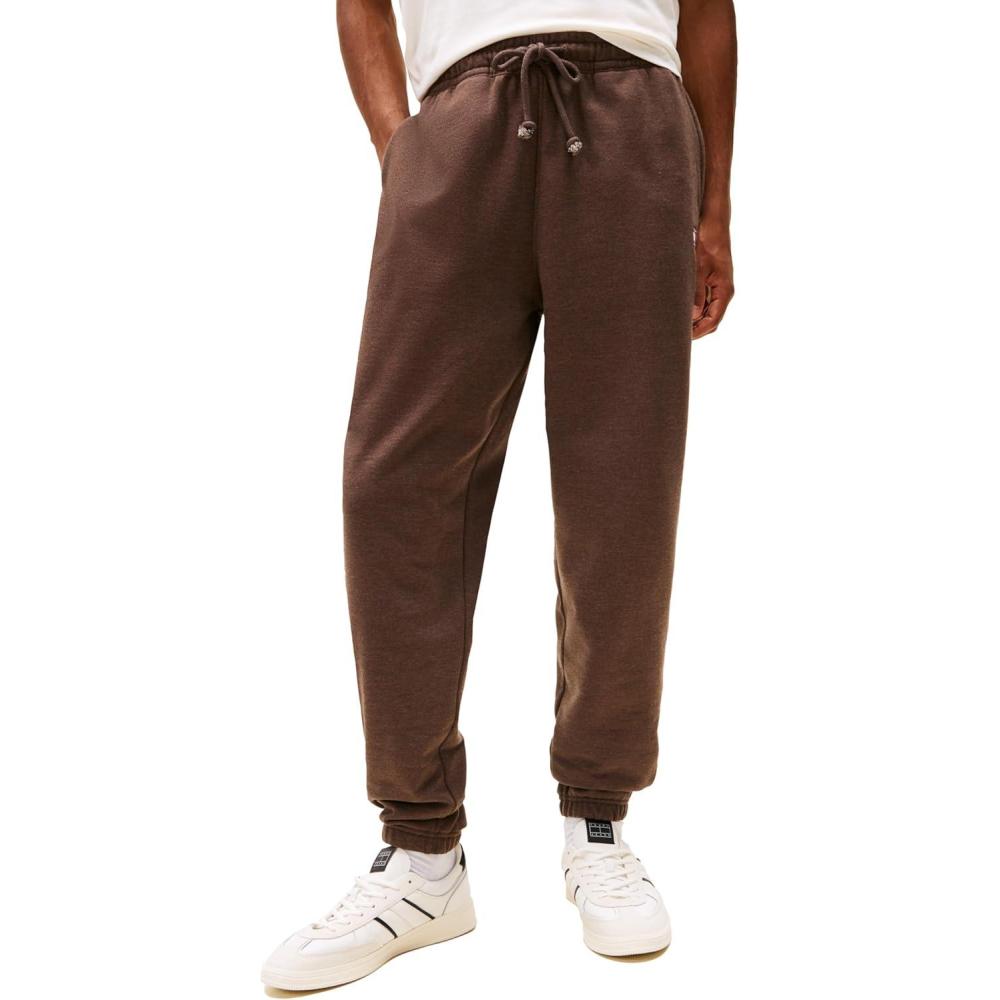 Tommy Jeans Men’s Casual Jogger Sweatpants with Embroidered Flag Logo(Black Walnut Heather)