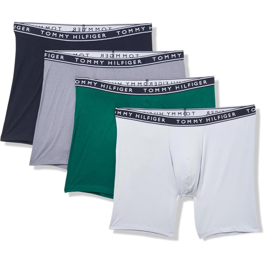 Tommy Hilfiger Cotton Stretch Boxer Brief 4-Pack(Blue Cheer Pewter Sand Jade Sea Navy)