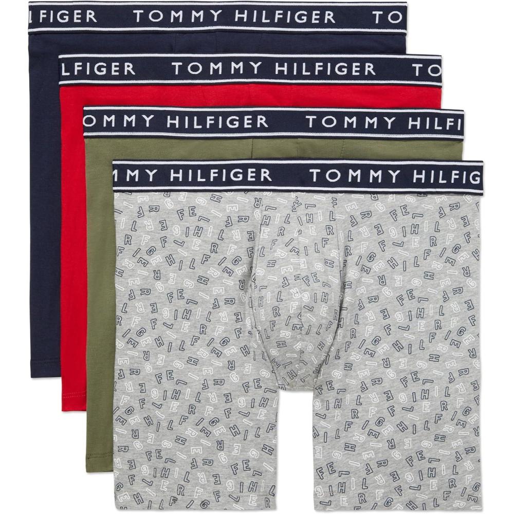 Tommy Hilfiger Cotton Stretch Boxer Brief 4-Pack(Mahogany Grey Heather Logo Print Four Leaf Clover Navy)