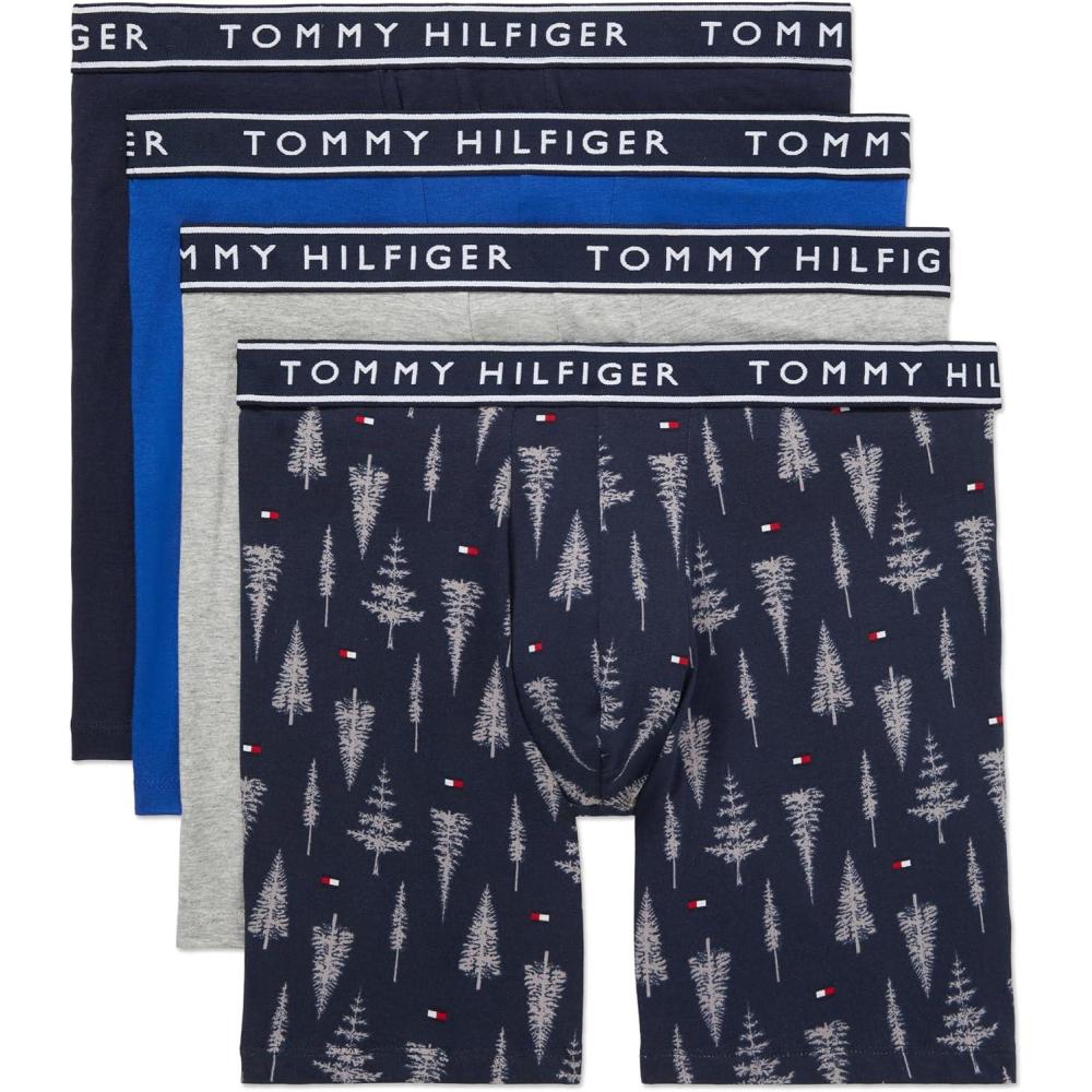 Tommy Hilfiger Cotton Stretch Boxer Brief 4-Pack(Mazarine Blue Navy Tree Print Grey Heather Navy)